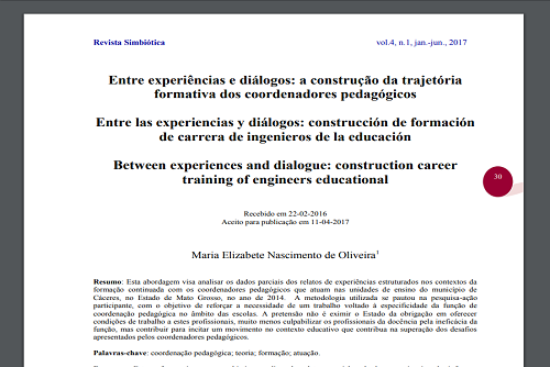 Entre experiências e diálogos: a construção da trajetória formativa dos coordenadores pedagógicos 17/09/2019